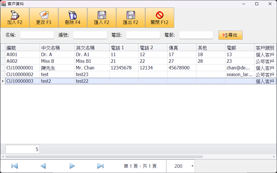 - 「客戶」可自定編號。