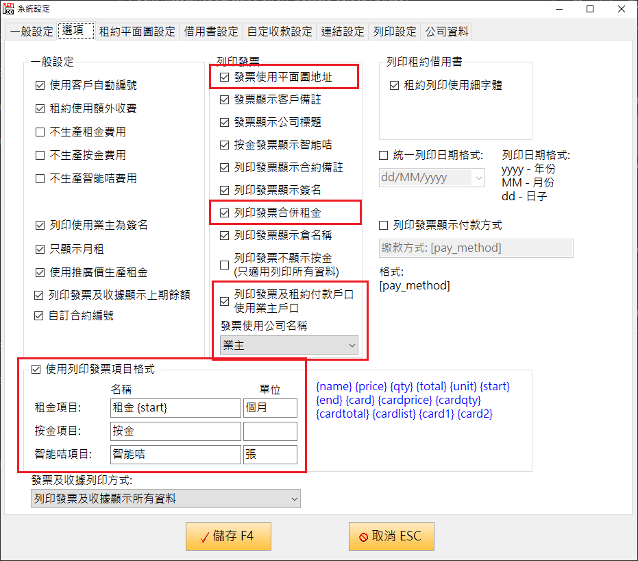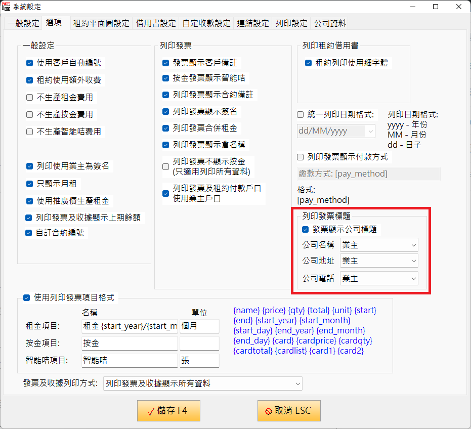 - 在設定加了「列印收據時顯示合約編號」