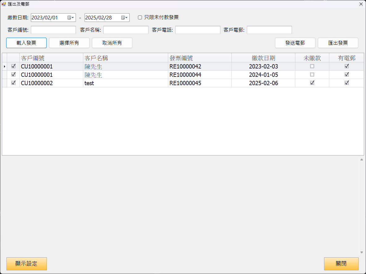 - 「匯出及電郵」加了可選擇個別發票。