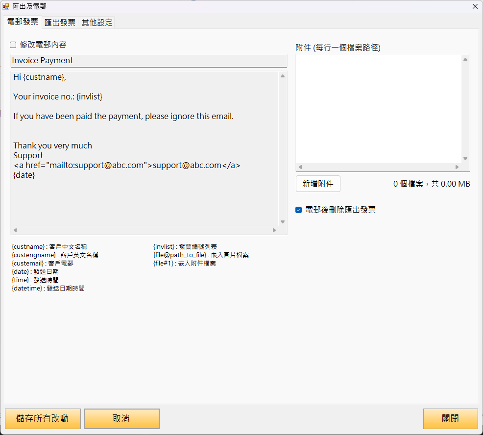 - 在「發票」中加了「客戶已繳款」,如未繳款的「發票」,請不點選這項目。