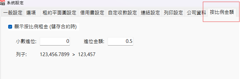 - 在設定加了「按比例金額」