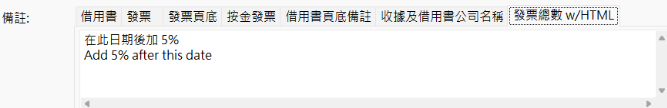 - 在「系統設定」中的「發票頁底」可設定通知書及發票的頁底文字。