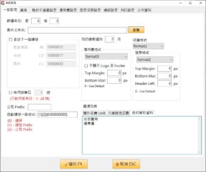 - 右面為號碼設定,可更改下一個號碼